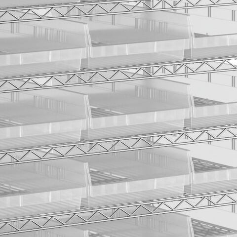 The included high-density, injection-molded shelf bins are designed to withstand the rigors of industrial environments, feature a highly durable polypropylene construction with reinforced edges, and are impervious to most chemicals.