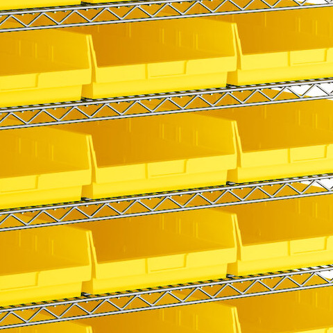 The included high-density, injection-molded shelf bins are designed to withstand the rigors of industrial environments, feature a highly durable polypropylene construction with reinforced edges, and are impervious to most chemicals.