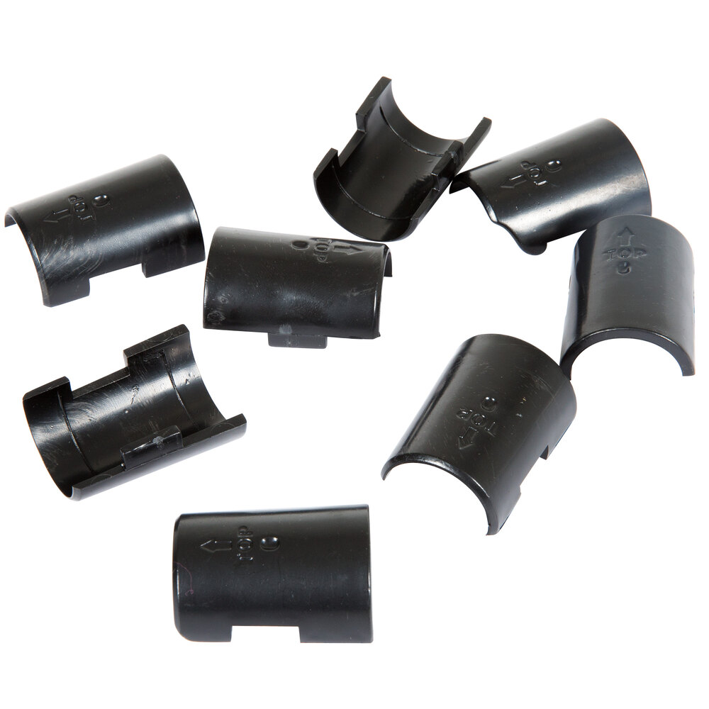 Each shelf purchased comes with four pairs of split sleeves that are used to attach the shelf to its compatible posts (sold separately).