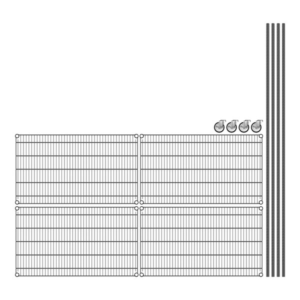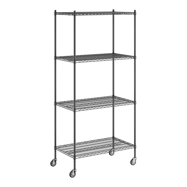 View All ItemsKeep your storage area organized with this Regency 24" NSF black epoxy mobile wire shelving starter kit with 4 shelves!
