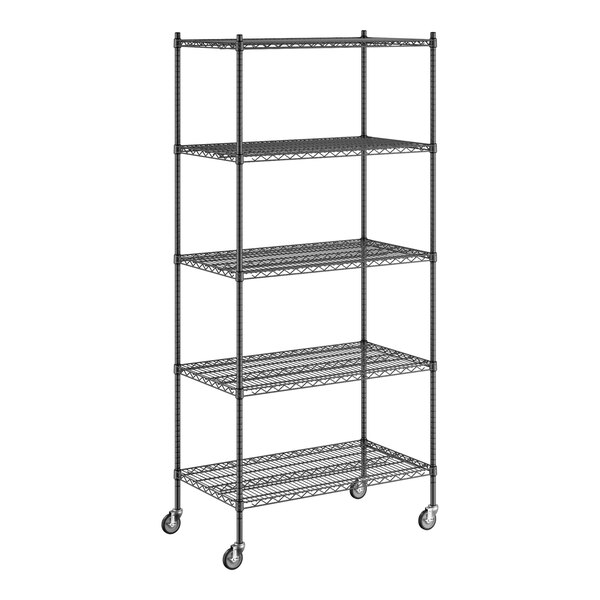Regency 24" x 42" x 92" NSF Black Epoxy Mobile Wire Shelving Starter Kit with 5 Shelves