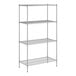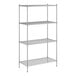 This kit includes (4) 24" wide wire shelves and (4) 86" posts, which allow you to create a convenient storage solution for your restaurant, hotel, bar, warehouse, or garage.