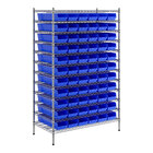 Maintain an organized industrial space with this Regency 24" x 48" x 74" wire shelving unit with 66 blue bins.