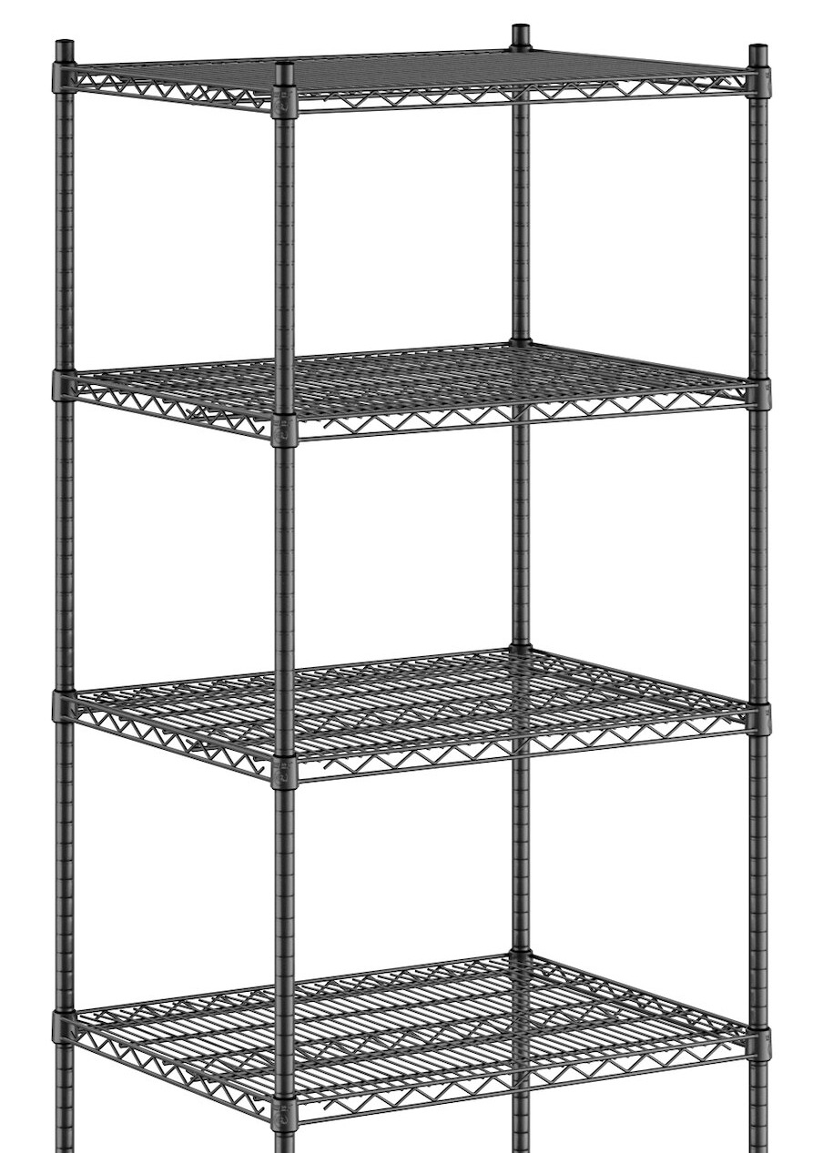 Each shelf features a wire construction, which allows for proper airflow around the stored supplies, products, or ingredients, and each shelf accommodates an ample amount of evenly distributed weight. For your convenience, the shelves are also adjustable and can be moved higher or lower along the posts.