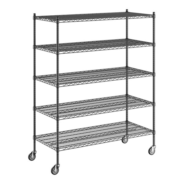 Keep your storage area organized with this Regency 24" wide NSF black epoxy mobile wire shelving starter kit with 5 shelves and 64" posts!
