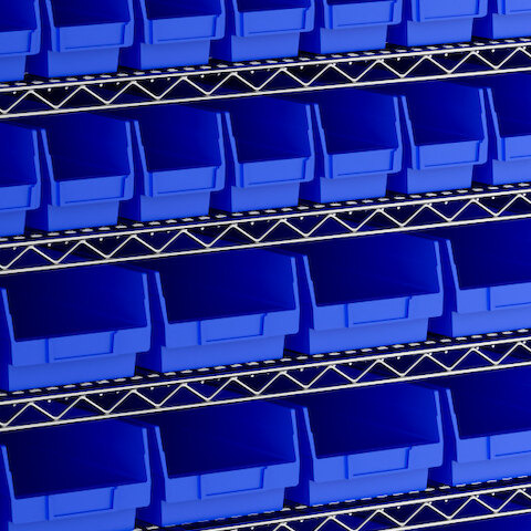The included high-density, injection-molded shelf bins are designed to withstand the rigors of industrial environments, feature a highly durable polypropylene construction with reinforced edges, and are impervious to most chemicals.