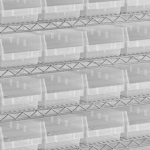 The included high-density, injection-molded shelf bins are designed to withstand the rigors of industrial environments, feature a highly durable polypropylene construction with reinforced edges, and are impervious to most chemicals.
