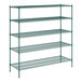 This Regency shelf kit will save space and help you organize storage areas in your restaurant, hotel, bar, or warehouse. Its durable zinc plated metal with a green epoxy coating allows it to stand up to your heaviest loads, whether in a dry or a damp storage area. As a result, it makes for a reliable, versatile, and long-lasting storage solution perfect for business applications.
