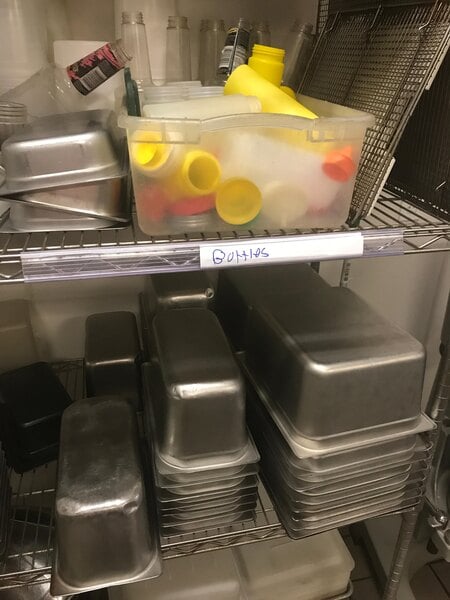 Fits nicely on metro shelving to help keep things organized as well as properly rotated. We use a first in first out system on our shelves left to right and this eliminates any confusion.