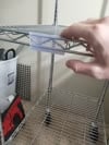Easily knocked off in shorter lengths; should be slightly smaller to have a tighter grip on Regency shelving units.
