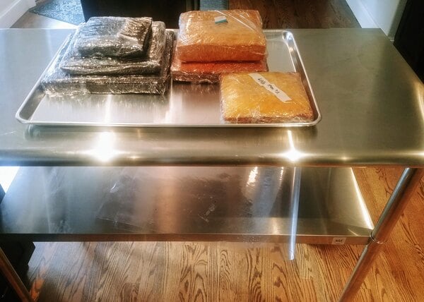 Specs show top holds 600 lbs. Cart wobbles a little with my 160lbs pizza oven but is functioning if careful while rolling. Cart height with casters is 39.5", way too tall and dangerously unbalanced. 3 weeks after delivery a torn to shreds box came with two shorter legs (missing two.) Shorter legs, if you have all 4, would make the cart 36" tall with the casters. I ended up cutting the 4 longer legs down which was time consuming and requires special metal cutting tools.