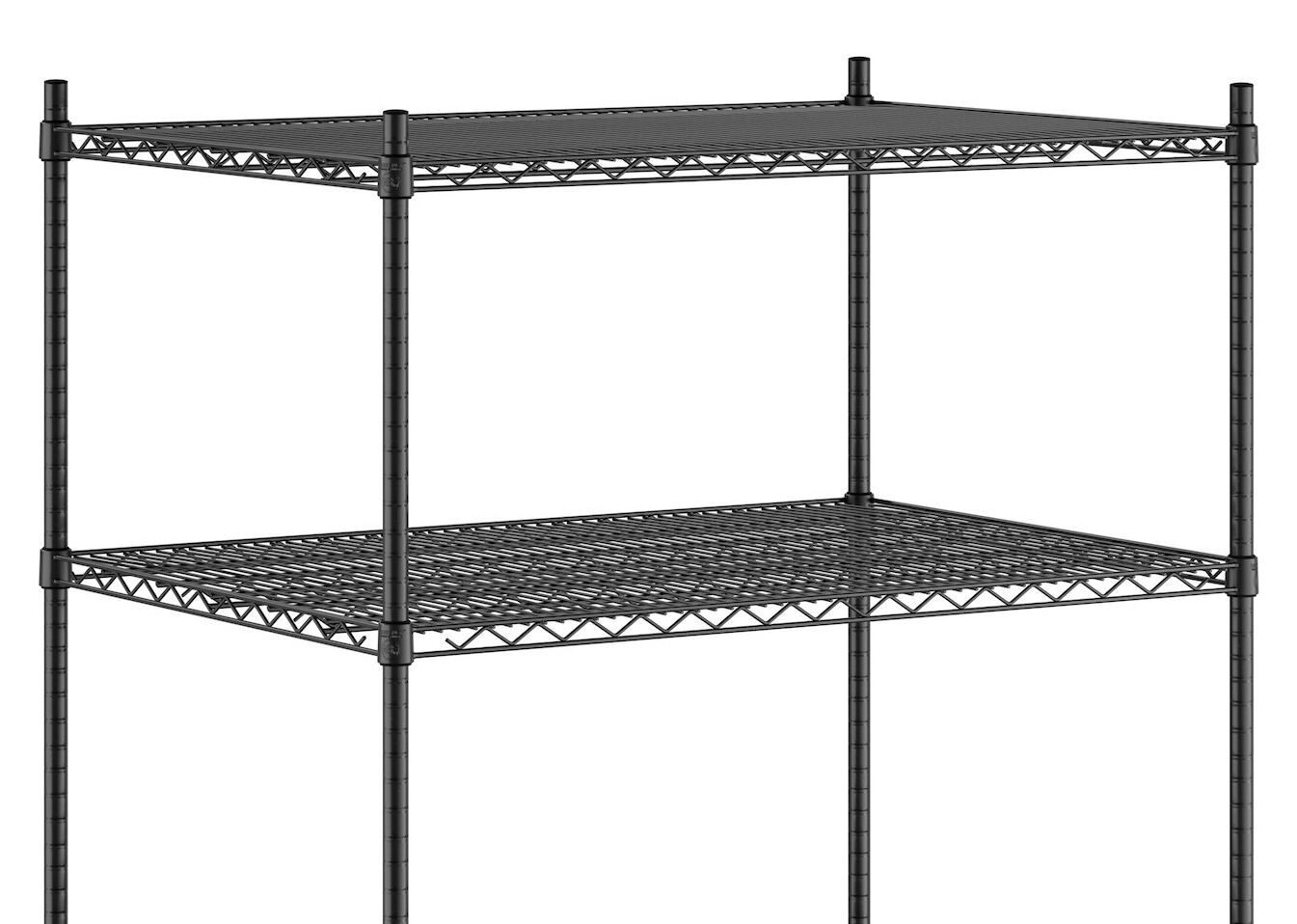 - (4) 64" stationary posts allow for shelves to be adjusted with included feet