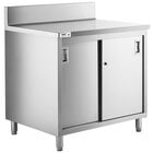 Optimize your commercial workspace with this Regency 30" x 36" 16 gauge type 304 stainless steel enclosed base open front table with adjustable midshelf and 6" backsplash.