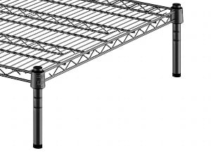 This kit boasts a black epoxy coated wire construction that works well in back-of-house storage and supply areas. Since it resists corrosion from humidity, this shelving unit is a great choice for walk-in coolers, storage rooms, or dish rooms. Its wire shelves do a great job of facilitating proper airflow around your stored supplies, helping to prolong the shelf life of food.