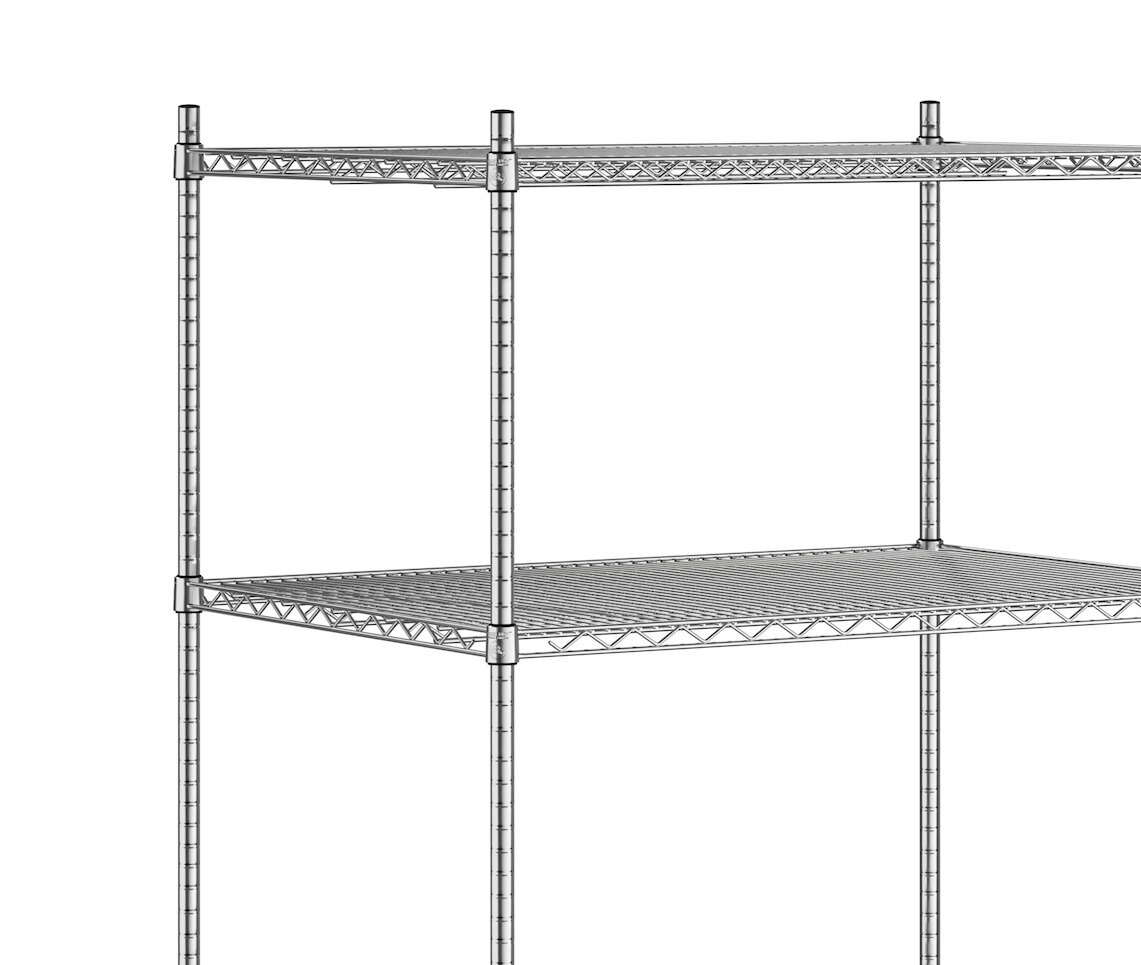 Made of sleek, durable chrome, this unit is ideal for use in your business's merchandising and display spaces or in back-of-house dry storage areas. The shelving kit's high-quality, commercial grade design is built for maximum longevity, ensuring a lasting, multi-purpose investment that's sure to accommodate your ever-evolving needs.