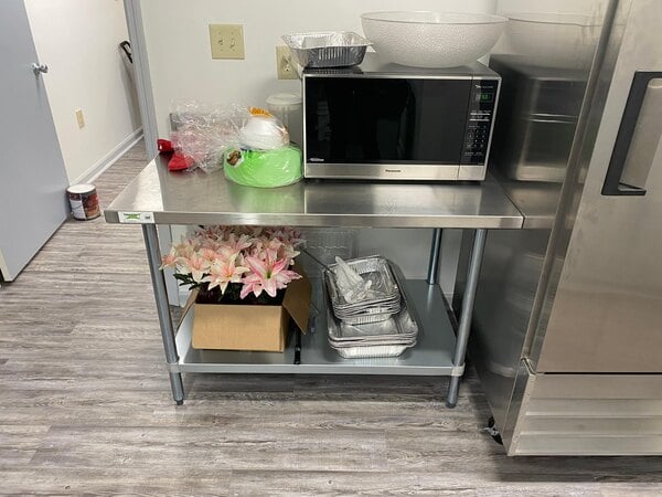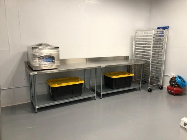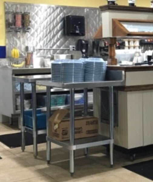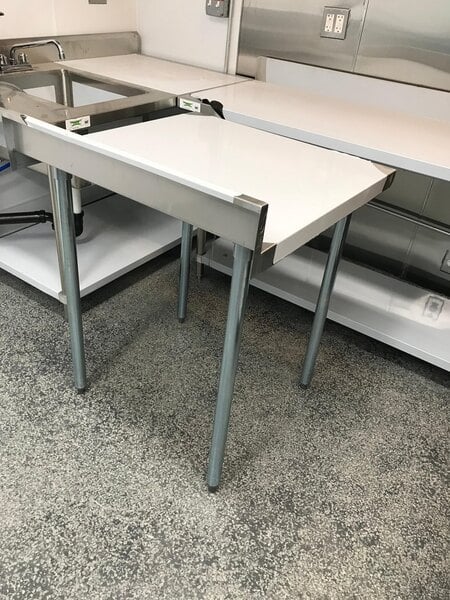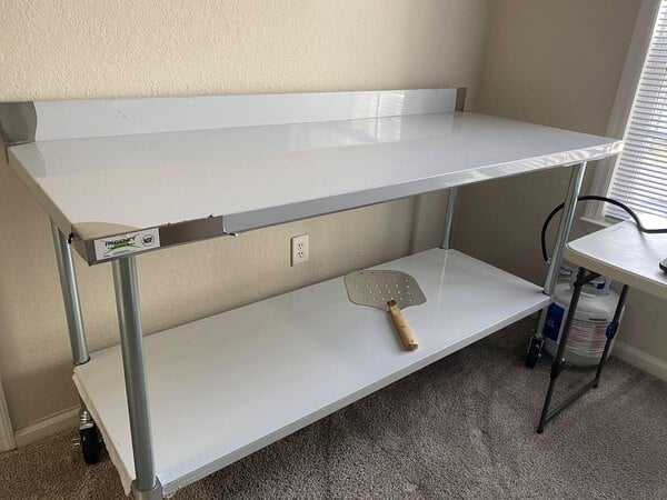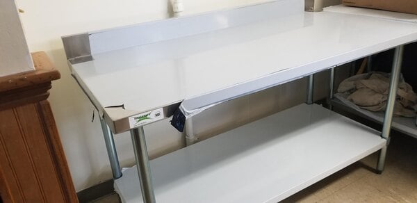 Good quality table. Super strong. The 30inch by 60inch work top is the perfect size for any prep job, and the weight bearing capiblities make that possible. The 4 inch back splash means you don't have to worry about stuff rolling off or dripping off the back.