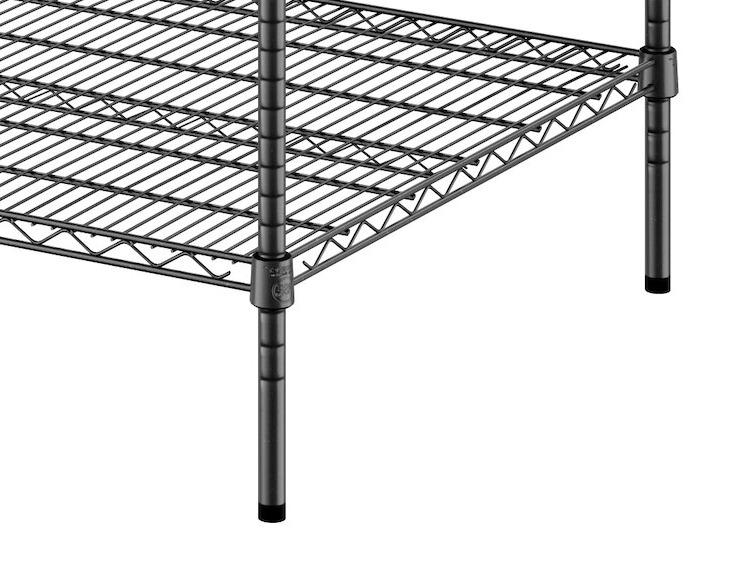 This kit boasts a black epoxy coated wire construction that works well in back-of-house storage and supply areas. Since it resists corrosion from humidity, this shelving unit is a great choice for walk-in coolers, storage rooms, or dish rooms. Its wire shelves do a great job of facilitating proper airflow around your stored supplies, helping to prolong the shelf life of food.
