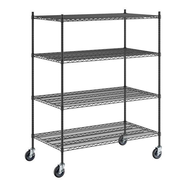 Regency 30" x 54" x 70" NSF Black Epoxy Mobile Wire Shelving Starter Kit with 4 Shelves