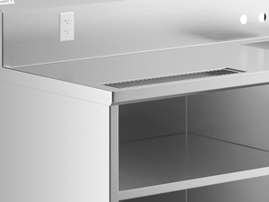This beverage table features a full length 10" backsplash equipped with a GFI duplex electrical outlet, which provides an easy way to plug in a coffee machine or a cold beverage dispenser. With its two open shelves, lockable cabinet, and built-in trough, this unit is equipped to meet all your beverage table needs in one place.