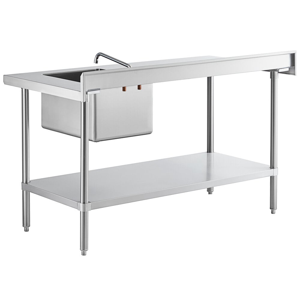 This Regency work table with sink features sink type 304 stainless construction, which offers greater durability and corrosion resistance than type 430 stainless steel options, making it the ideal choice for your kitchen! With its integrated 16" x 20" sink on the right side, this unit allows you to easily rinse ingredients as you are completing other tasks on the table's large work surface. Plus, its undershelf offers a convenient storage solution, so you can keep everything you need close at hand for a streamlined operation.