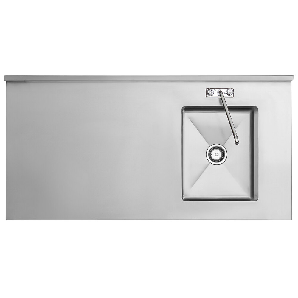 Great heavy duty stainless steel work table and sink for my restaurant kitchen. The back splash is very helpful. We use and abuse this table and it looks brand new.