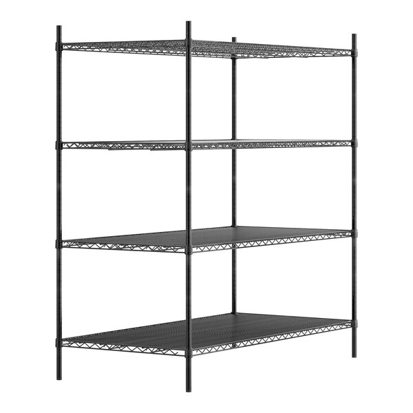 This Regency NSF black epoxy 4-shelf kit will save space and help you organize storage areas in your restaurant, hotel, bar, or warehouse. For maximum versatility, the epoxy coating allows for use in either dry or moist environments, making the unit a multipurpose investment that's sure to accommodate your ever-evolving needs. Plus, the unit's high-quality design is commercial grade and delivers the reliable performance every business expects and needs.