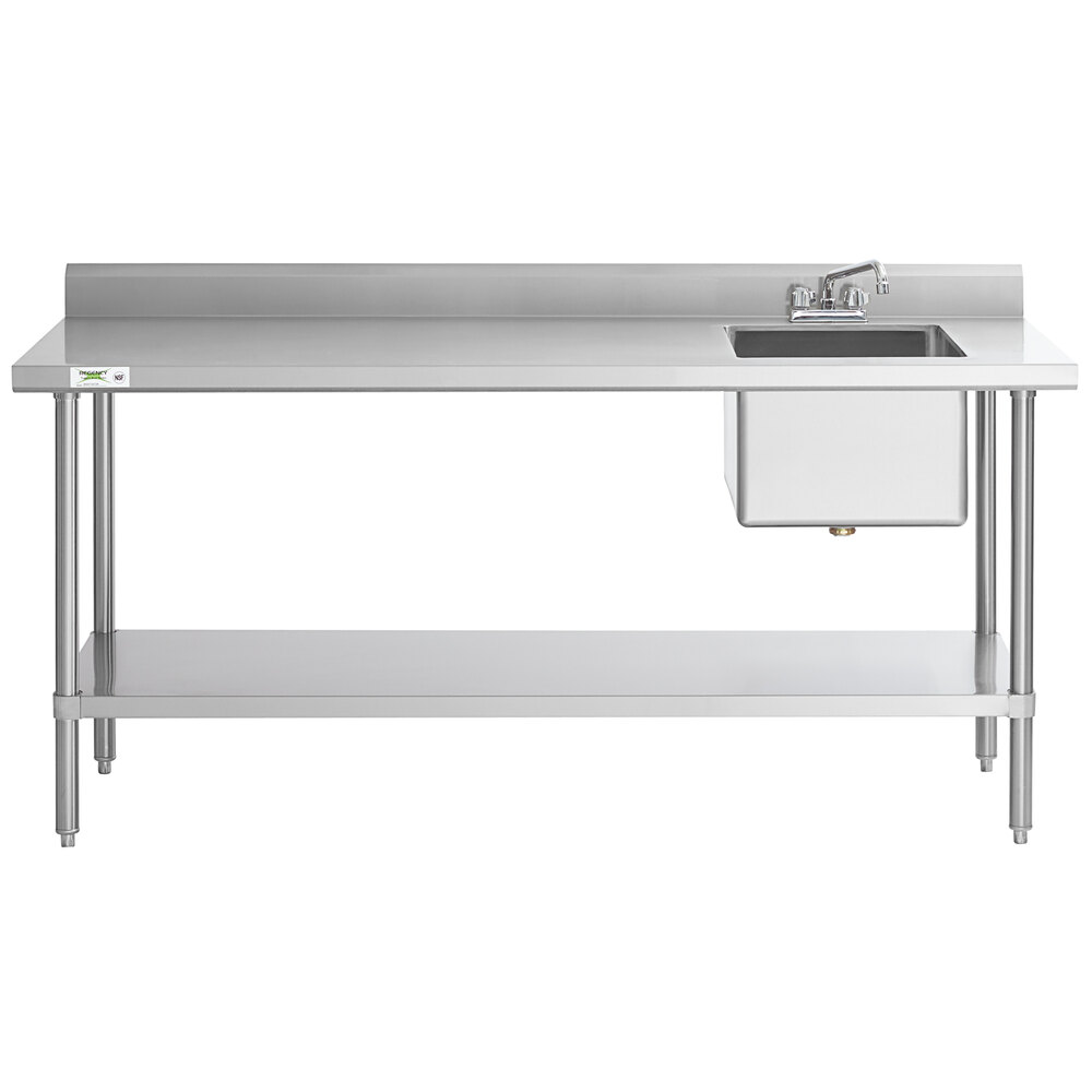 This Regency work table with sink features sink type 304 stainless construction, which offers greater durability and corrosion resistance than type 430 stainless steel options, making it the ideal choice for your kitchen! With its integrated 16" x 20" sink on the right side, this unit allows you to easily rinse ingredients as you are completing other tasks on the table's large work surface. Plus, its undershelf offers a convenient storage solution, so you can keep everything you need close at hand for a streamlined operation.