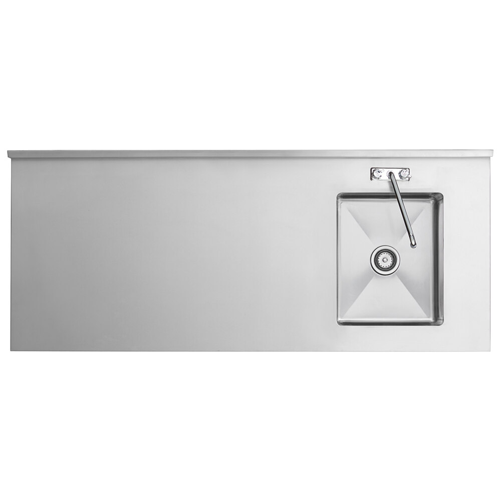 Great heavy duty stainless steel work table and sink for my restaurant kitchen. The back splash is very helpful. We use and abuse this table and it looks brand new.