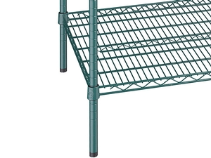 This kit boasts a green epoxy coated wire construction that works well in back-of-house storage and supply areas. Since it resists corrosion from humidity, this shelving unit is a great choice for walk-in coolers, storage rooms, or dish rooms. Its wire shelves do a great job of facilitating proper air flow around your stored supplies, helping to prolong the shelf life of food.