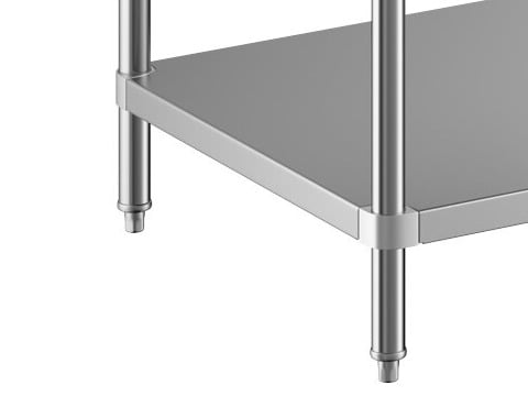 The 18 gauge type 430 stainless steel undershelf provides easily accessible storage for ingredients, small kitchen appliances, and other kitchen supplies.