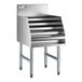 An excellent addition behind virtually any bar, this liquor display rack effectively boosts your bartender's efficiency while offering customers a glimpse of of your liquor selection! This rack's bottom, back, sides, hat channel, and steps are made of 18 gauge type 304 stainless steel that not only make it a durable addition to your bar setup, but also one that is extremely simple to clean.
