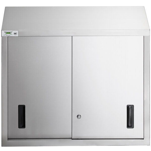 Storage is a vital commodity in any business, so make use of unused wall space with this Regency stainless steel wall cabinet! This unit turns an open section of your wall into a place to keep commonly used items so that they're near at hand when you need them, and out of the way when you don't. It's a perfect location to keep chemicals and janitorial supplies, or you can use it for general storage needs in restaurants and office buildings. This cabinet comes with a cleat-style mounting bracket and keys, and all other mounting hardware is sold separately.