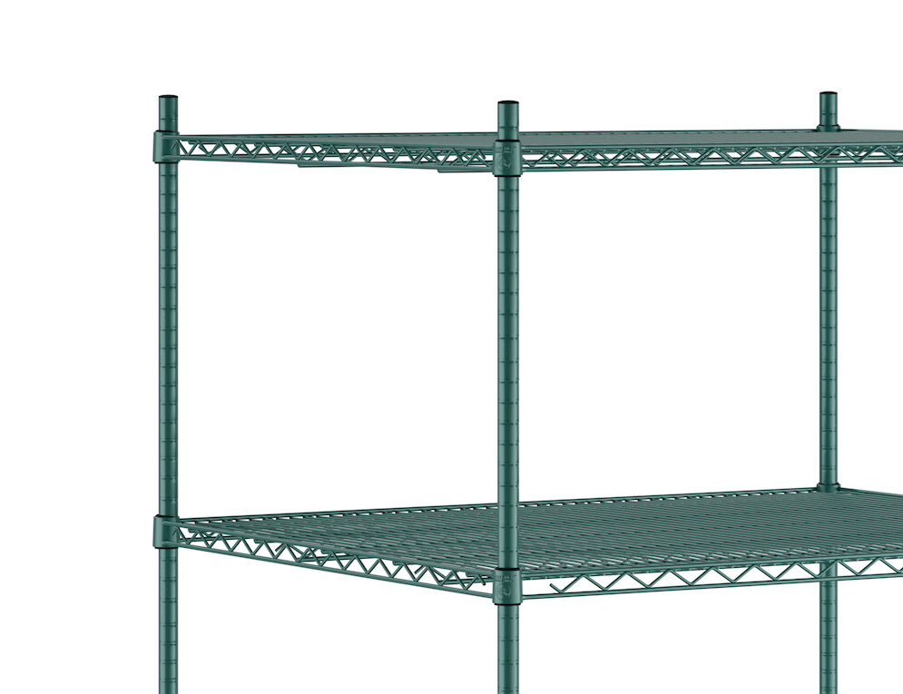 View All ItemsKeep your storage area organized with the Regency green epoxy stationary wire shelving starter kit.
