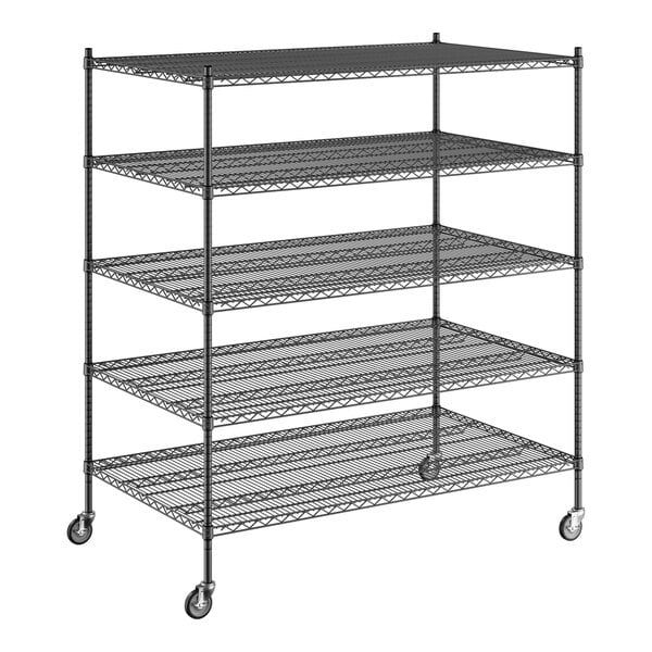 View All ItemsKeep your storage area organized with this Regency NSF black epoxy mobile wire shelving starter kit with 5 shelves!