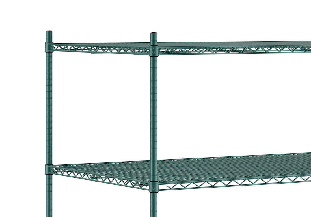 Keep your storage area organized with the Regency green epoxy stationary wire shelving starter kit.