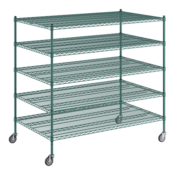 Regency 36" x 60" x 60" NSF Green Epoxy Mobile Wire Shelving Starter Kit with 5 Shelves