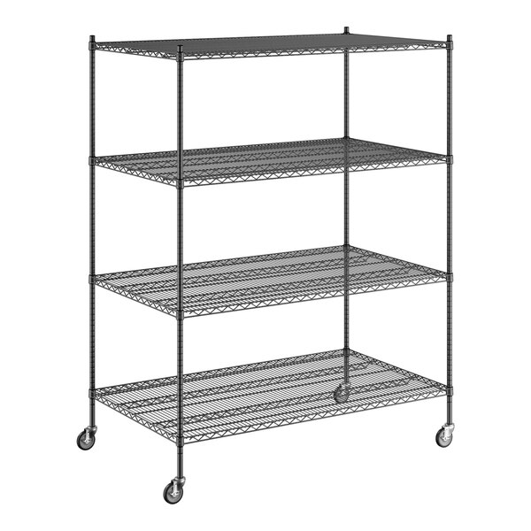 View All ItemsKeep your storage area organized with this Regency NSF black epoxy mobile wire shelving starter kit with 4 shelves!
