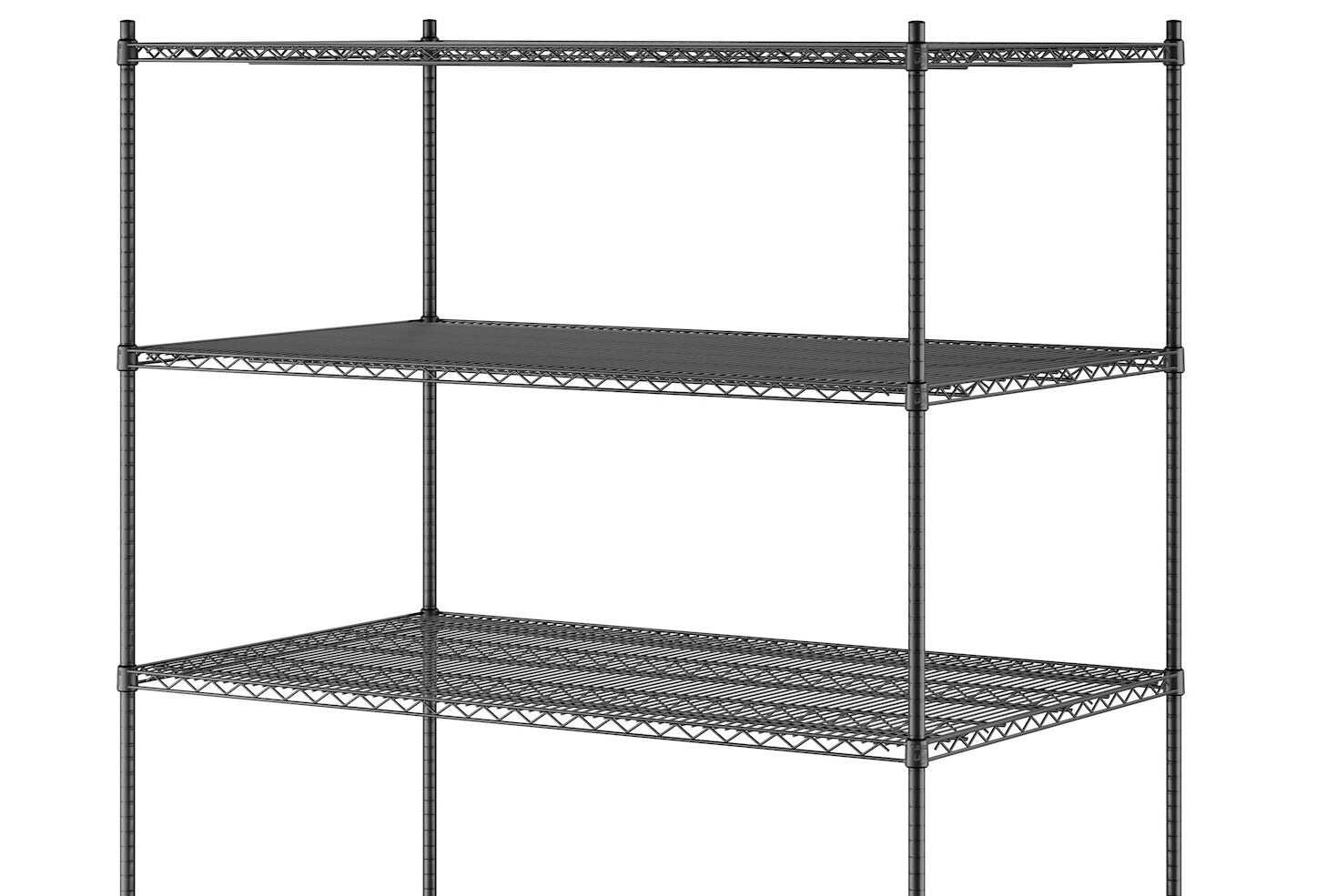 - (4) 96" stationary posts allow for shelves to be adjusted with included feet