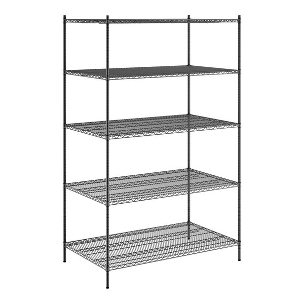 Regency 36" x 60" x 96" NSF Black Epoxy Stationary Wire Shelving Starter Kit with 5 Shelves