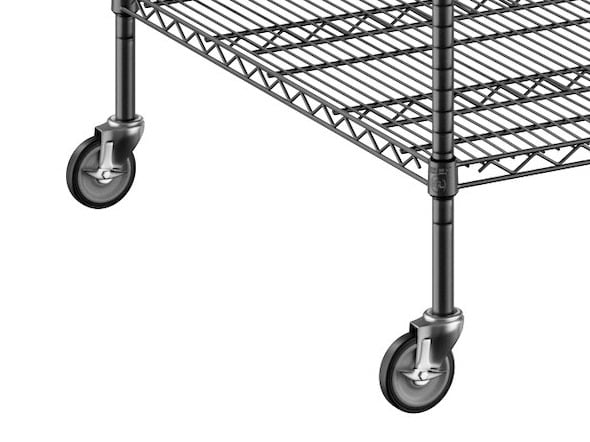 View All ItemsKeep your storage area organized with this Regency NSF black epoxy mobile wire shelving starter kit with 4 shelves!