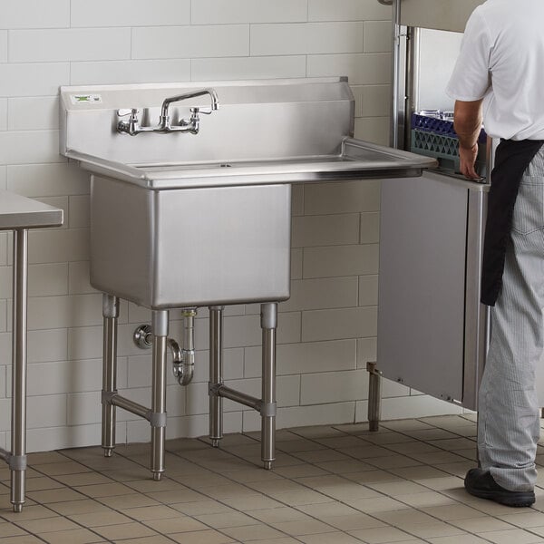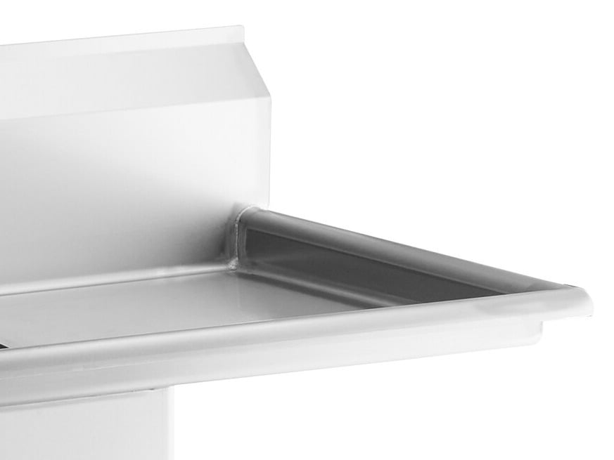 Product arrived well packed and in excellent excellent condition. I like how the side drain board has kind of a funnel shape to it so eater drains right off and doesn’t poop on the side. Great prep sink for our new store.