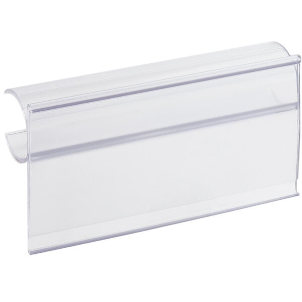 Protect labels from wear and tear with this Regency 4" x 2" clear vertical clip-on label holder for shelf posts! Made from durable plastic, this label holder shields labels (sold separately) from dust, dirt, tearing, and other damage in heavy-use environments. Its clear, matte cover is UV-treated and supports easy barcode scanning, helping labels stay readable and scannable over time.