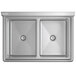 This sink features (2) 14" deep bowls that includes a 3 1/2" drain basket strainer to catch food debris, which prevents the drain from clogging. It also features a 1 1/2" drain outlet size. For easy cleaning, the compartment has rounded corners so you can rinse and wipe down the sink. This sink also includes a 1 1/2" raised, rolled edge that raises to 2" on the front and both sides, as well as a 9 3/4" tall backsplash to contain splashes and overflow. The sink is designed with (2) 1 1/8" diameter holes punched on 8" centers to accommodate 1 faucet (sold separately).