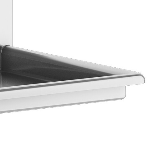 A 1 1/2" rolled edge makes it more comfortable for staff to use the sink. Plus, the rounded ledge contains splashes and liquid overflow to maintain your kitchen's floor and help prevent injuries.