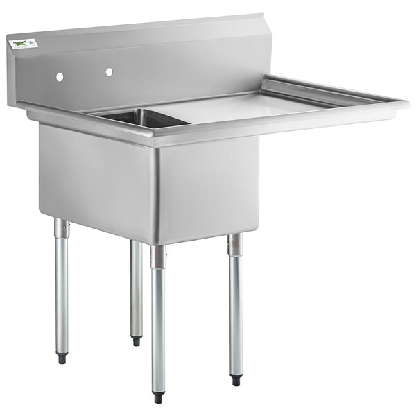 Wash, prep, or clean with ease when you use this 44" one compartment commercial utility sink with one 24" drainboard from Regency Tables and Sinks. Made of high-quality 16 gauge, type 304 stainless steel for reliable service, this gauge is thicker and much more durable than many similar sinks available. Additionally, type 304 stainless steel is exceptionally corrosion-resistant and easy to clean!