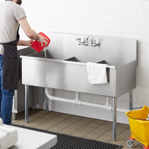 View All ItemsThis Regency 48" 16-gauge stainless steel three compartment commercial utility sink is a great economical choice for an array of establishments.