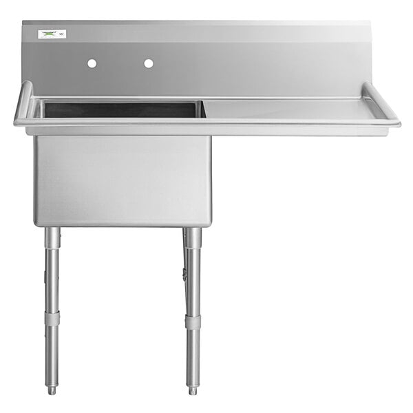 - Item #: 60s1232324xrRegency 49 1/2" 16 Gauge Stainless Steel One Compartment Commercial Sink with Stainless Steel Legs, Cross Bracing, and 1 Drainboard - 23" x 23" x 12" Bowl - Right Drainboard