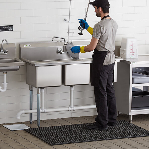 Customers appreciate this three-compartment sink for its sturdiness, durability, and perfect size for small spaces like food trucks and coffee shops. It is well-made, easy to assemble, and offers great value for the price. Ideal for kitchens needing efficient washing, rinsing, and sanitizing solutions, this sink meets NSF standards and is highly recommended for its functionality and quality.