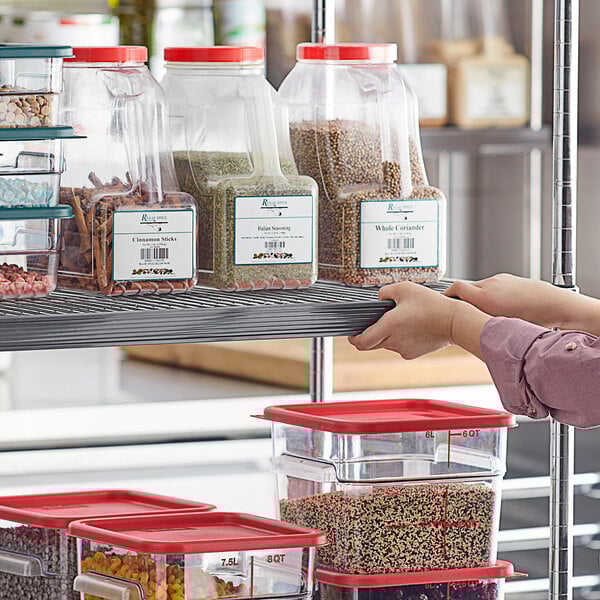 Fits nicely on metro shelving to help keep things organized as well as properly rotated. We use a first in first out system on our shelves left to right and this eliminates any confusion.