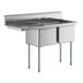 - Item #: 60s2171718grRegency 57" 16 Gauge Stainless Steel Two Compartment Commercial Sink with Galvanized Steel Legs and 1 Drainboard - 17" x 17" x 12" Bowls - Right Drainboard